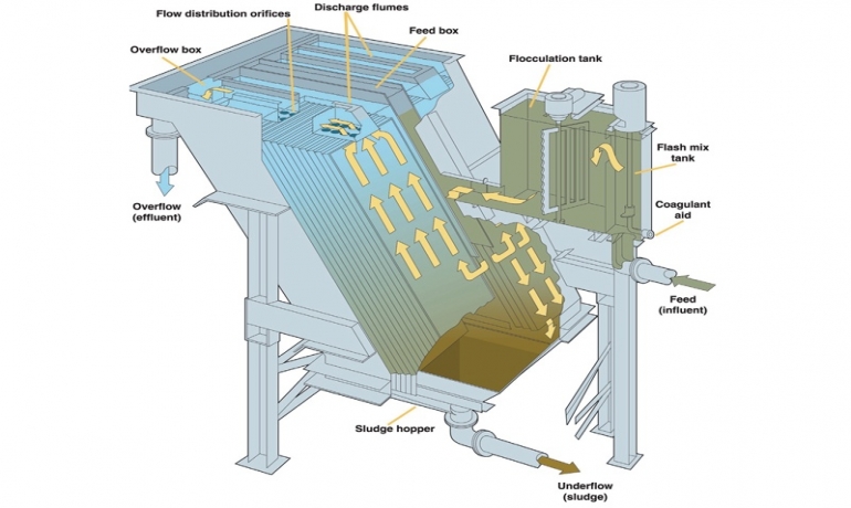 b. 帶刮泥機高效斜板沉淀池;